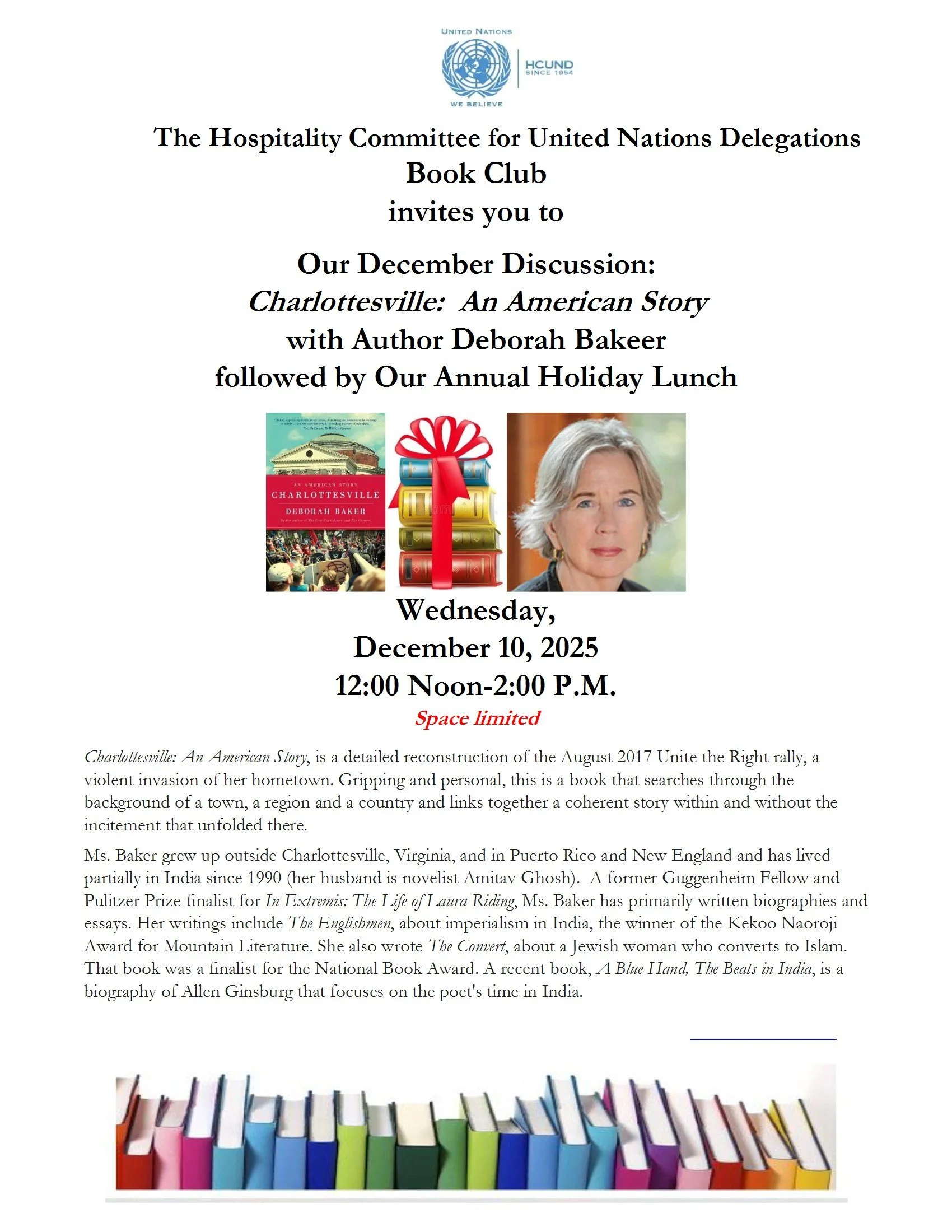 Book Club Discussion: Charlottesville: An American Story with Author Deborah Bakeer followed by Our Holiday Lunch