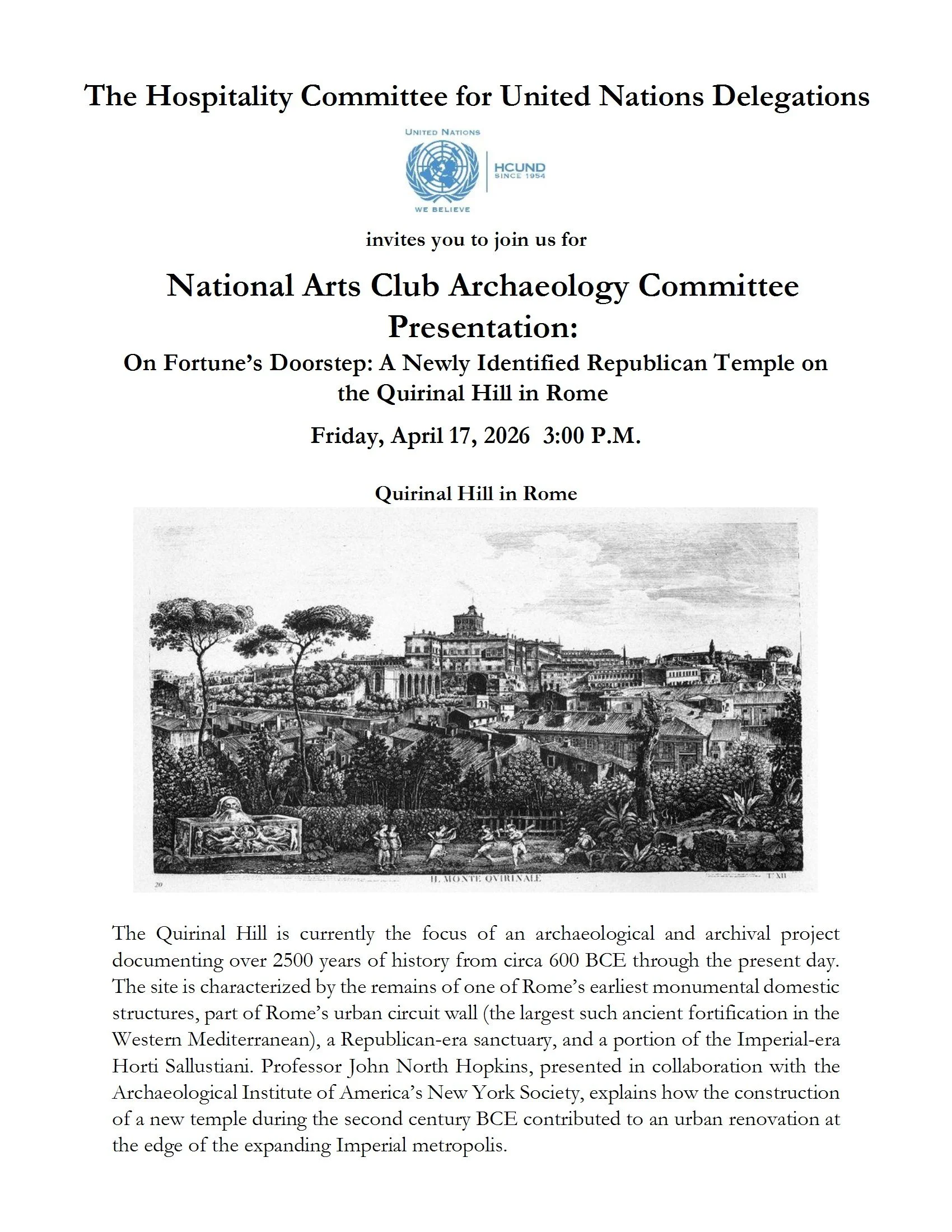 Please note that, in addition to registering with HCUND, the National Arts Club asks that you register directly with them through EventBrite: https://www.eventbrite.com/e/on-fortunes-doorstep-a-new-republican-temple-on-quirinal-hill-in-rome-registration-1984080425964?aff=oddtdtcreator